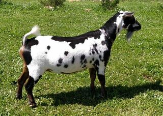 The Nigerian Dwarf is a miniature breed of dairy goat originating in West Africa and developed in the United States. The balanced proportions of the Nigerian Dwarf give it the appearance of the larger breeds of dairy goats, but does stand no more than 22.5″ (57 cm) and bucks no more than 23.5″ (60 cm). Any color or combination of colors is acceptable. The medium length ears are erect and alert. The face is either straight or dished, and the hair is short and fine.